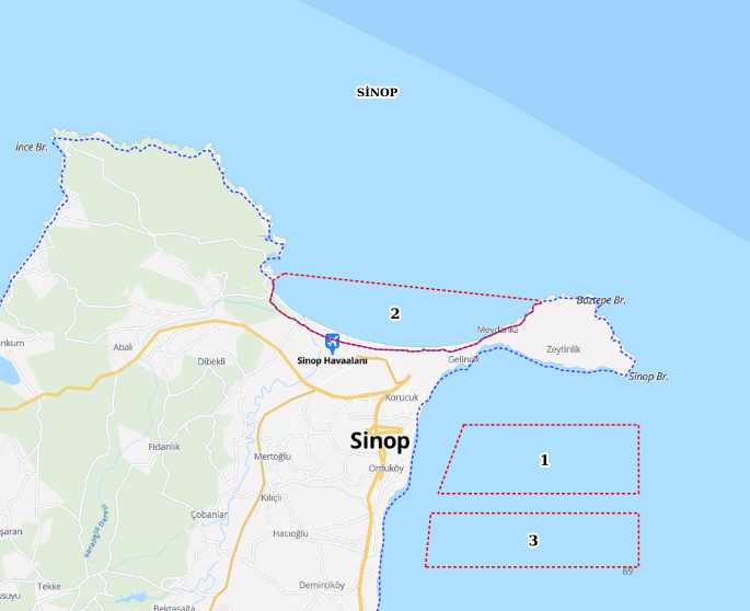 c) 3 nolu demirleme sahası: Tehlikeli yük taşıyan gemiler, nükleer güçle çalışan askeri gemiler ve karantina altına alınacak gemiler ile gazdan arındırma işlemi yapacak gemilerin demirleme sahası aşağıdaki koordinatların oluşturduğu deniz alanıdır.